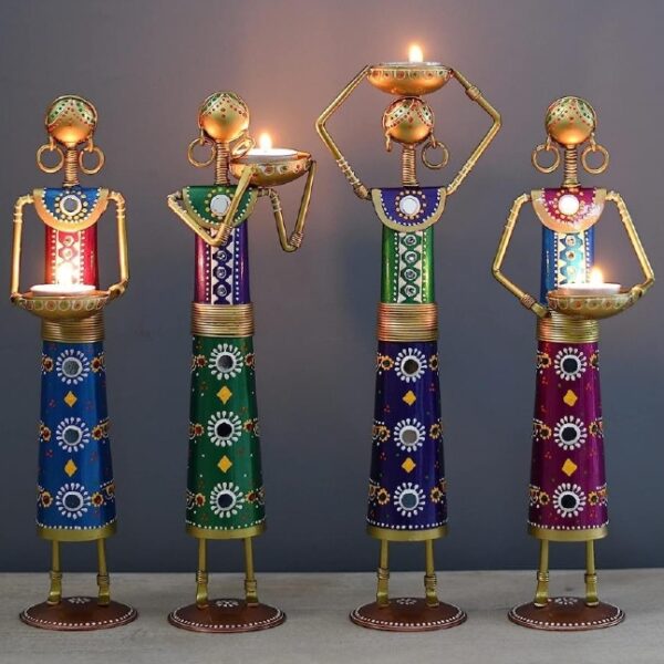 Metal Rajasthani Narega T-Light Showpiece Set of 4