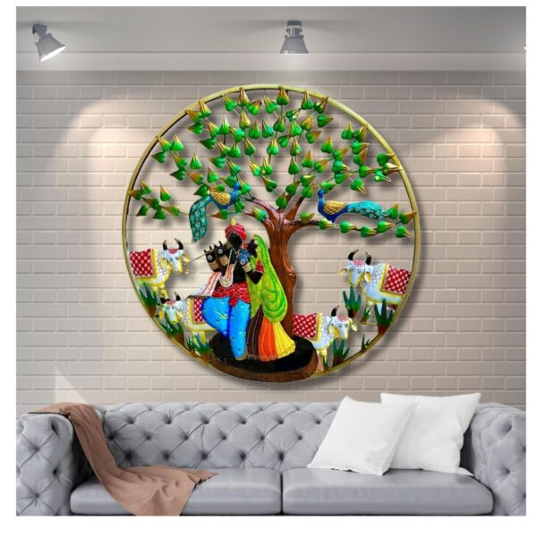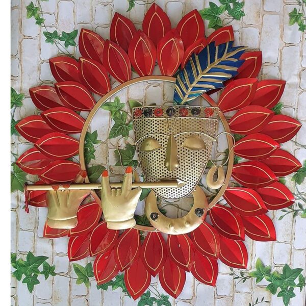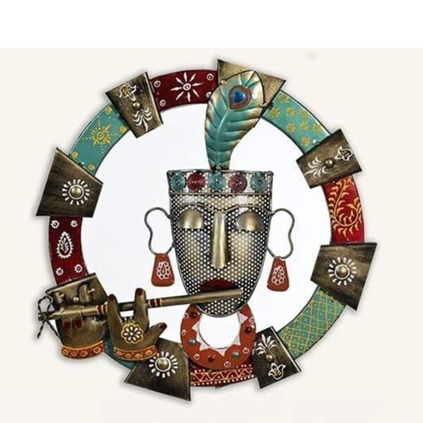 Iron Multicolor Playing Krishna Flute Wall Decor