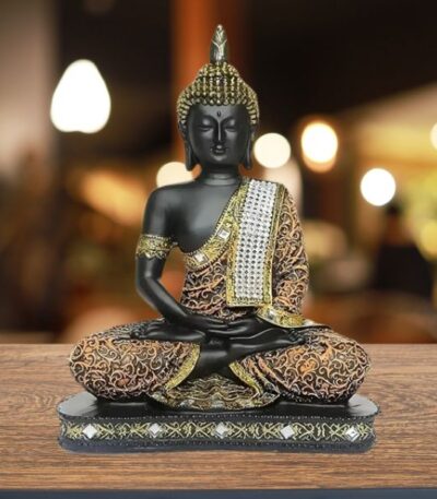 Meditating Sitting Buddha Statue Showpiece Idol – Home Decor Item for Living Room & Gifts (9inches,1, Orange Black)