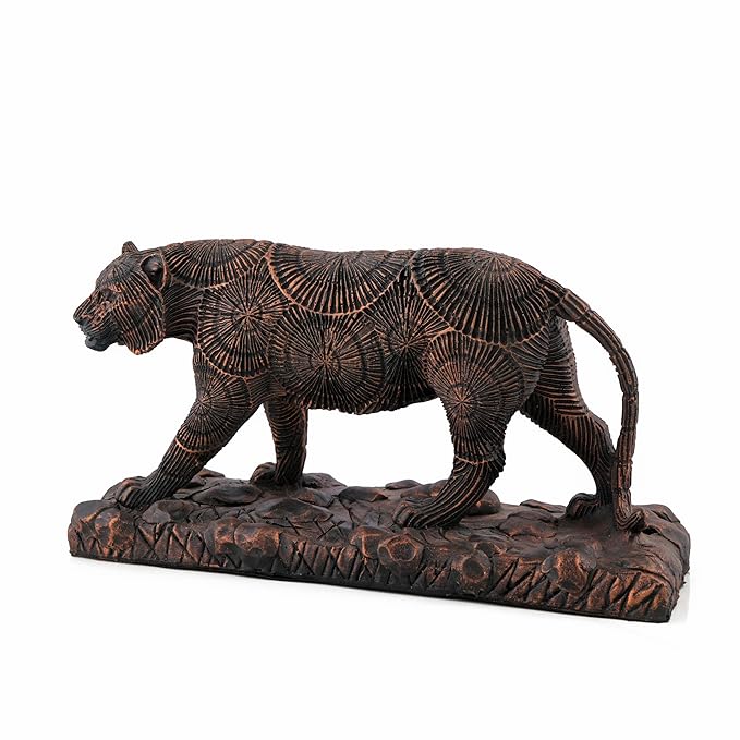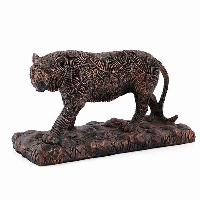 Enhance your space with the regal charm of this Sharni Statue, crafted from durable polyresin and finished in a beautiful brown and bronze tone. This decorative animal figurine combines strength and elegance, making it a striking centerpiece for any room.