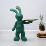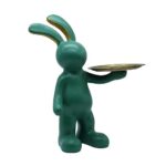 Bunny Figurine with Gold Tray, Handmade Resin Statue,