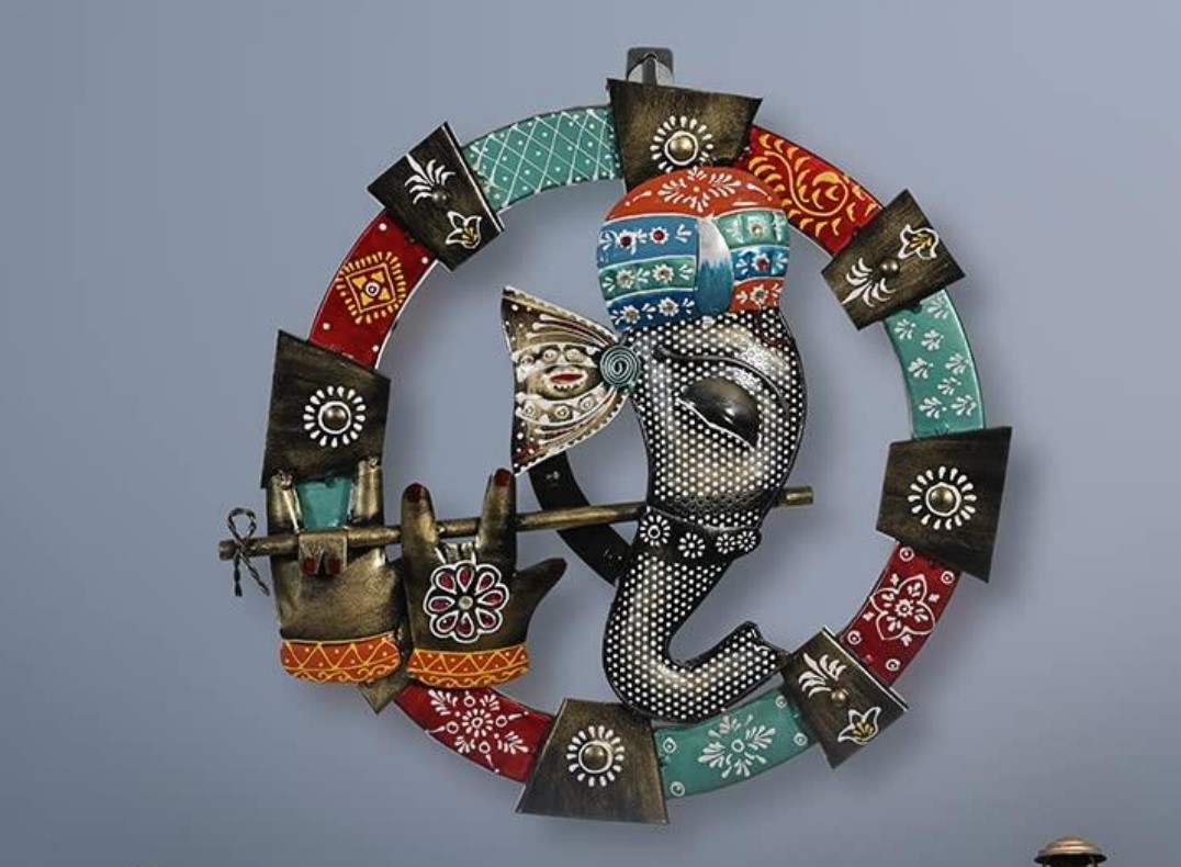 Iron Multicolor Playing Ghanesha Flute Wall Decor