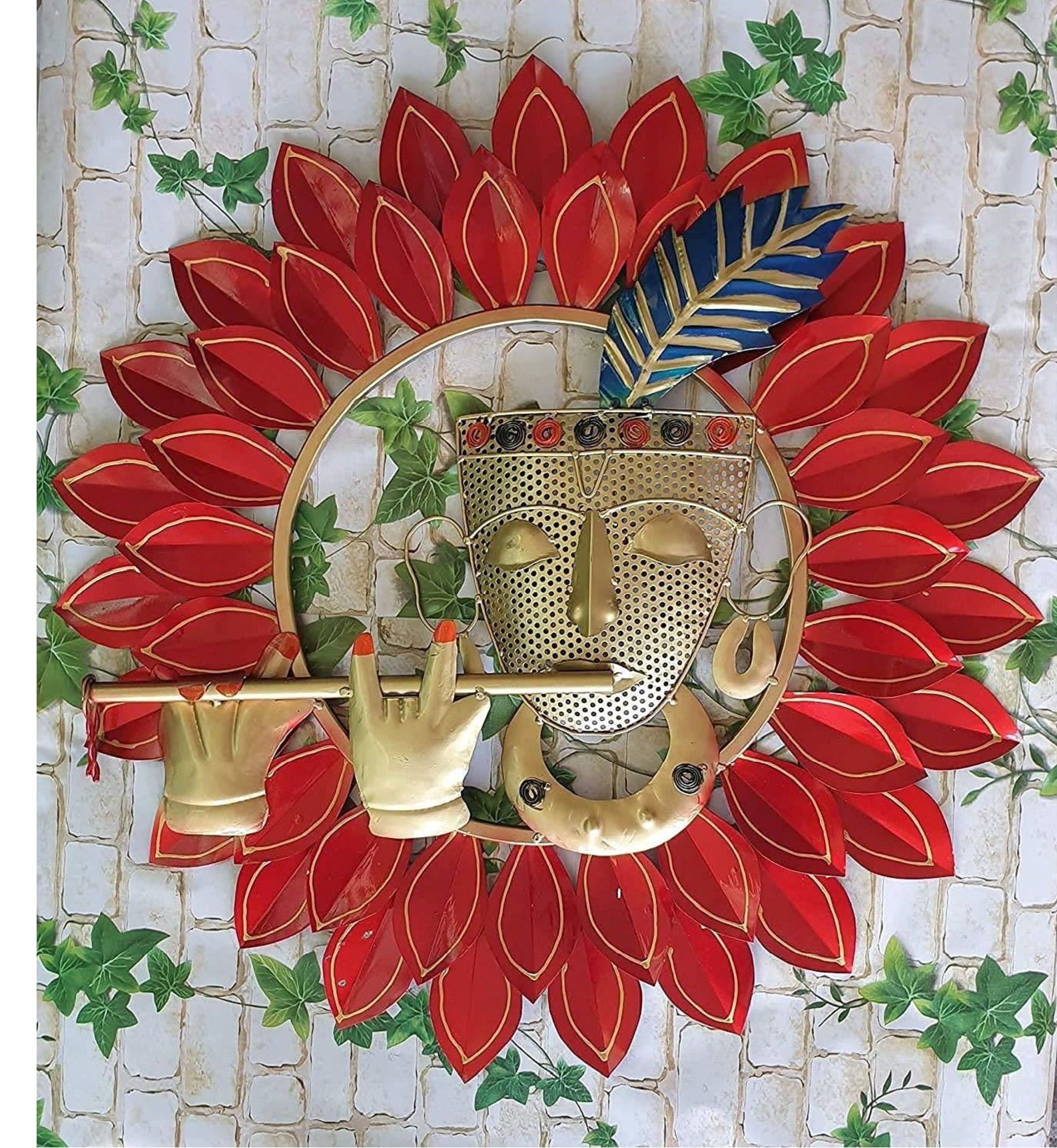 Add a divine musical charm to your walls with this Iron Red Colour Krishna Playing Flute Wall Decor.