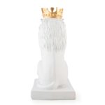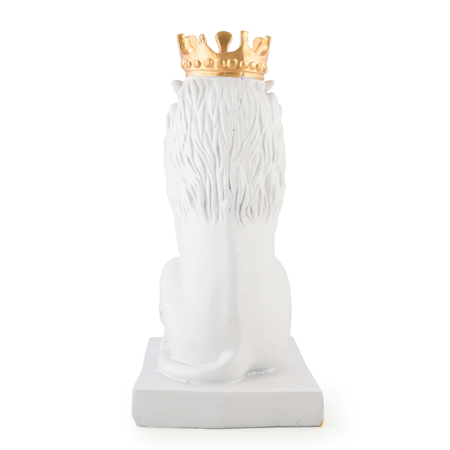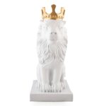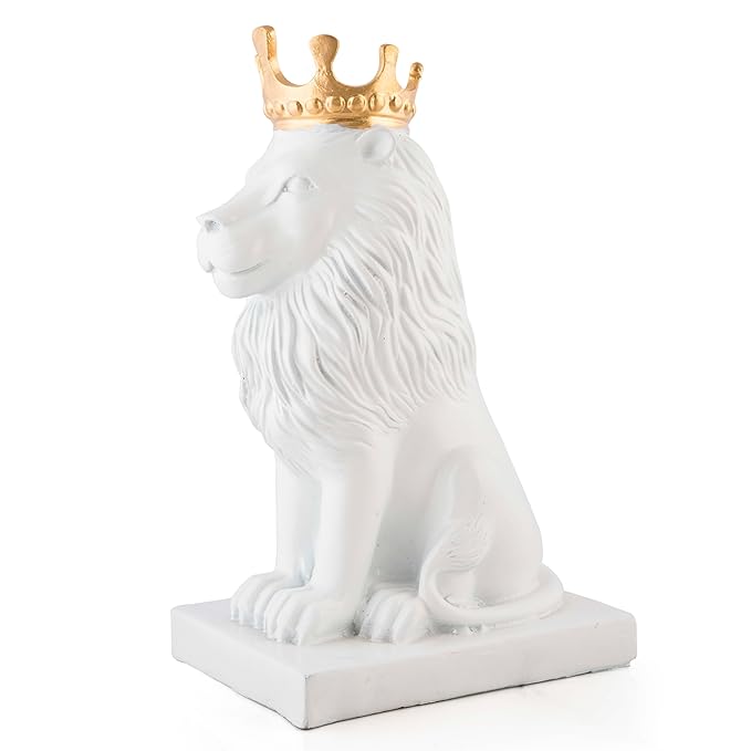 Lion Statue with Gold Crown, King of The Forest Lion Statue,Glod Crown Lion Figurine (White). Size 7×11 inches
