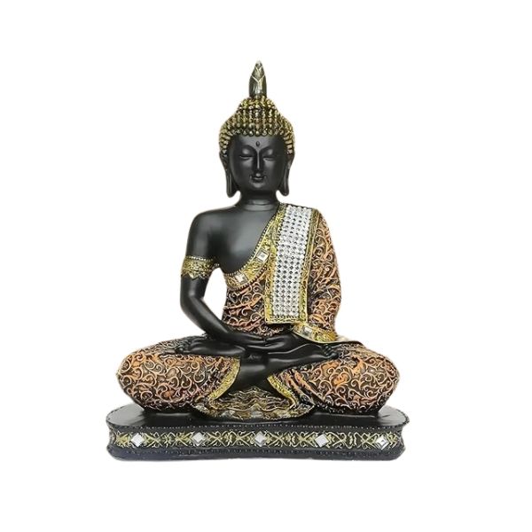 Meditating Sitting Buddha Statue Showpiece Idol – Home Decor Item for Living Room & Gifts (9inches,1, Orange Black)
