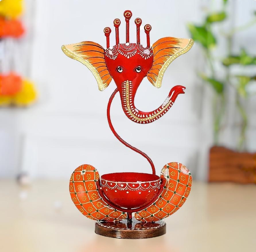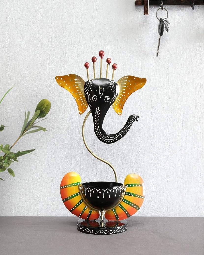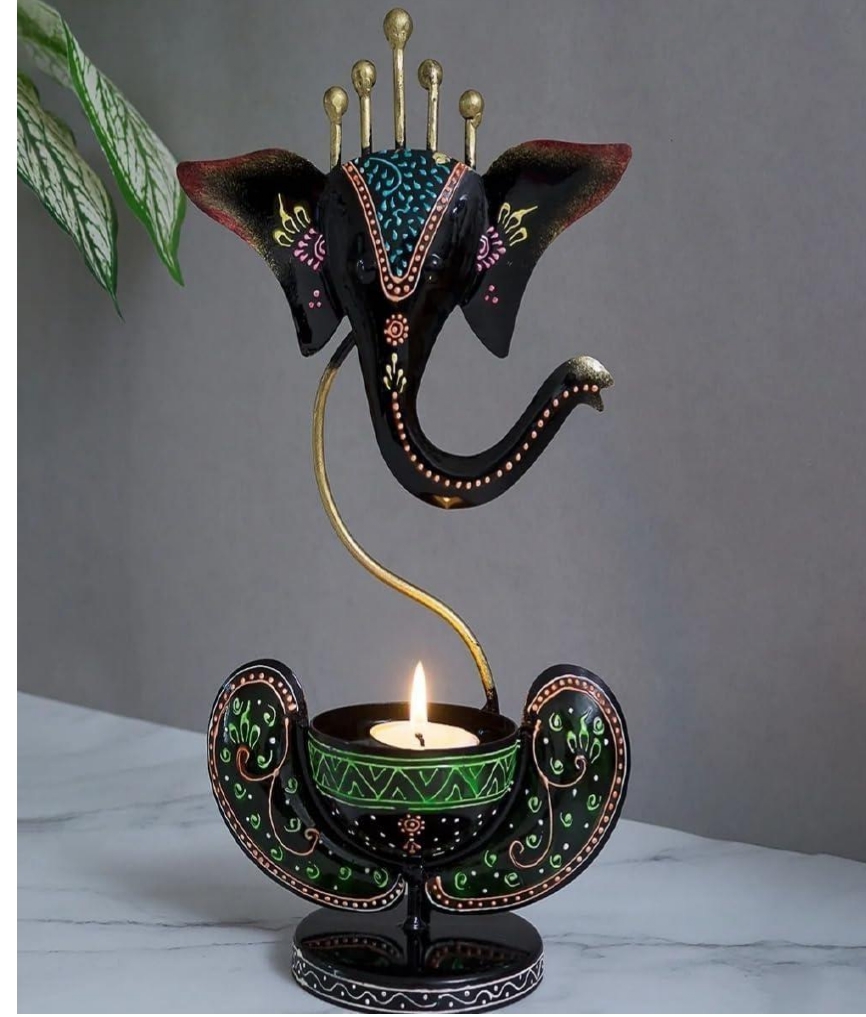 Illuminate your home with blessings and beauty through this artistic Metal Ganesh T-Light Holder.
