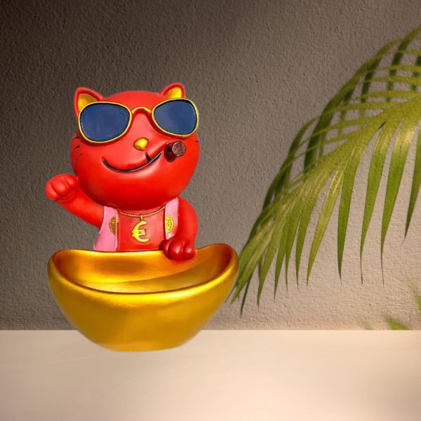 • Design: Modern cat figurine with built-in storage box