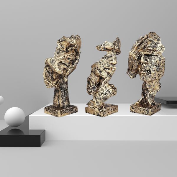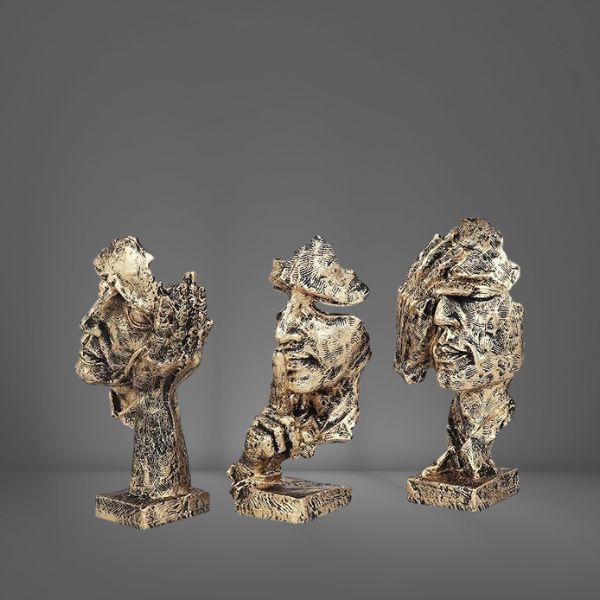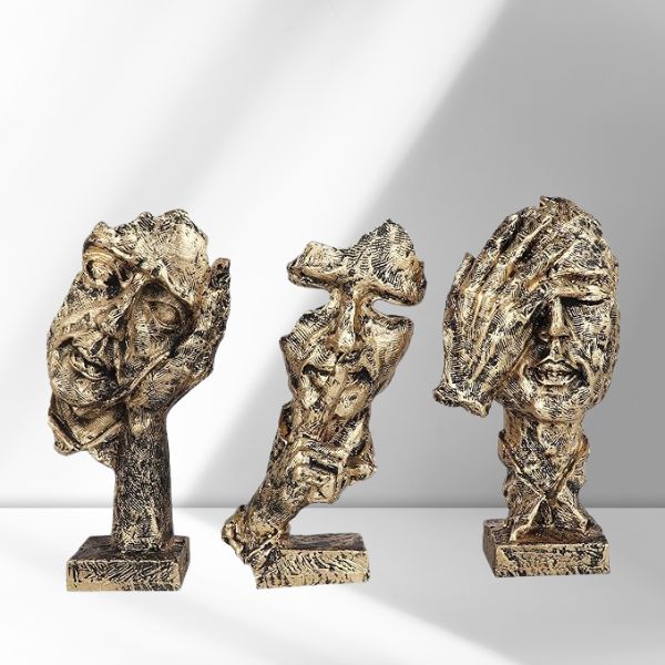Add a bold artistic flair to your space with this Set of 3 Men Expression Statues, beautifully crafted to reflect abstract human emotions. Designed in a striking black and golden color scheme, these figurines symbolize silence, contemplation, and mystery — making them perfect conversation starters.